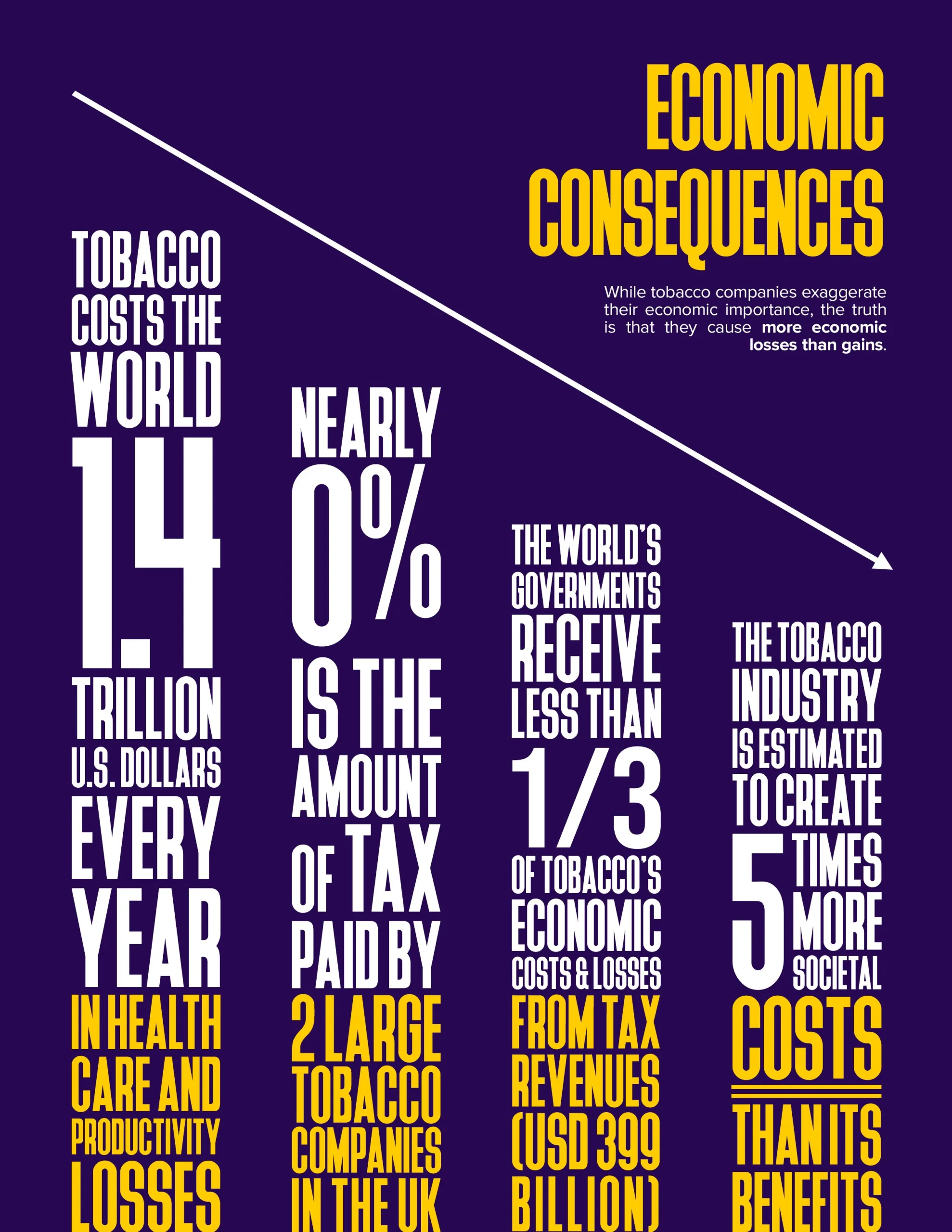 Killing 8 million people each year. Costing the world’s economy US $1.4 trillion annually. Undermining governments’ efforts to protect public health during a pandemic. Tobacco companies and their products cause significant damage each and every year—and have yet to be held fully accountable.