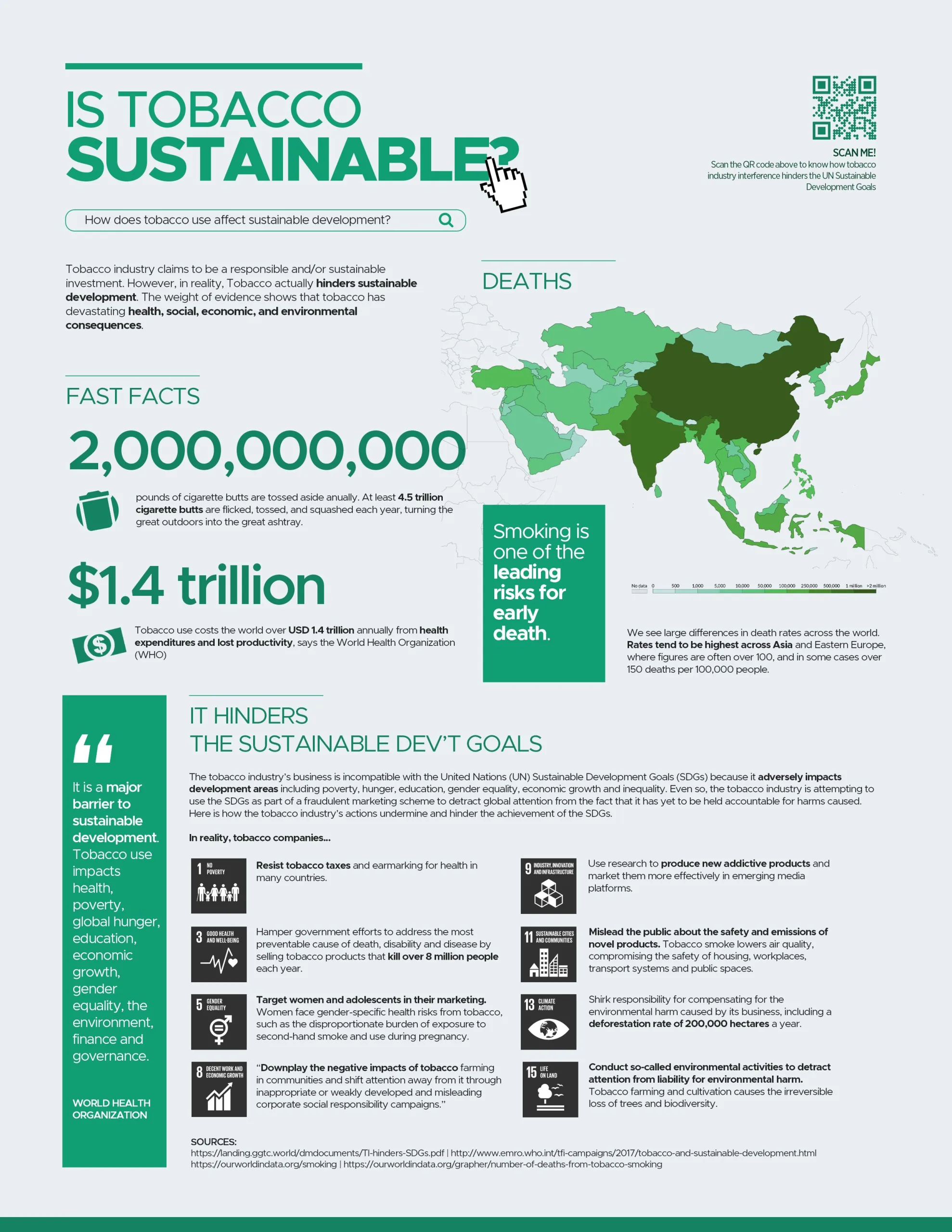 James Sablay, who also won the 1st-place prize for his “Behind the Façade” infographic, details the toll the tobacco industry takes on sustainable development.